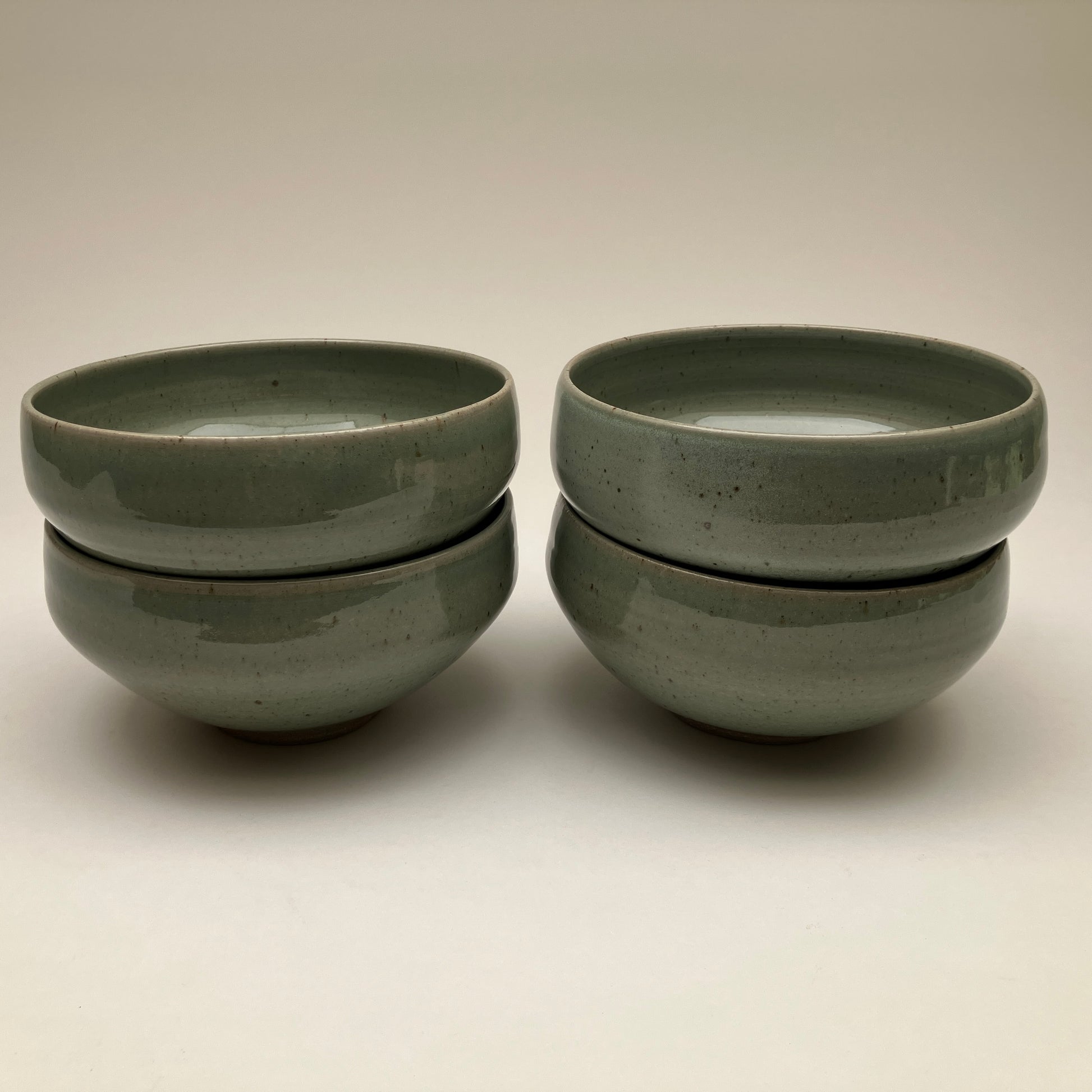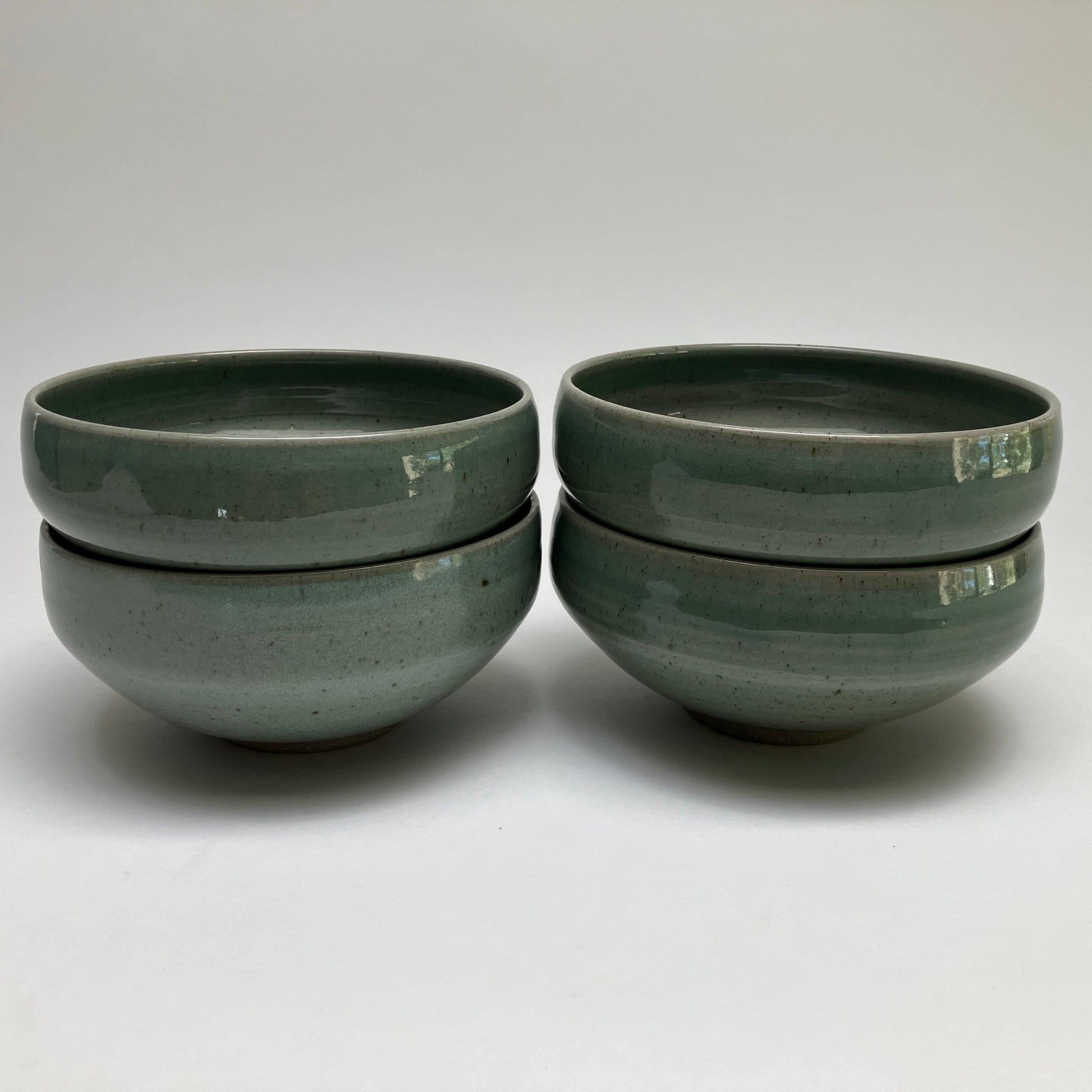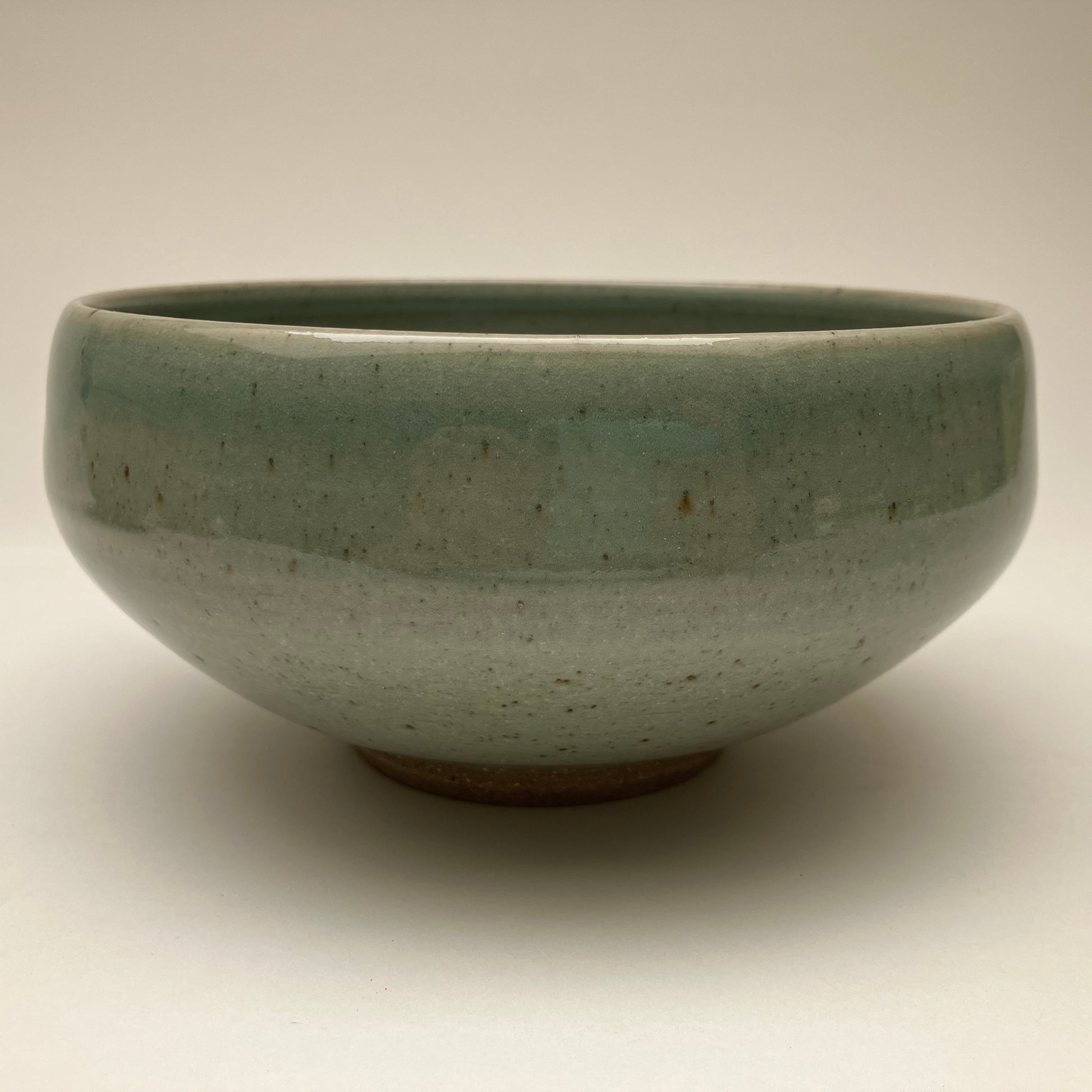 This is a larger version of the slip marbled angled bowl, with ample room for that extra helping. It is uniquely shaped with the rim narrower than the waist and finished in a celadon colored glaze.