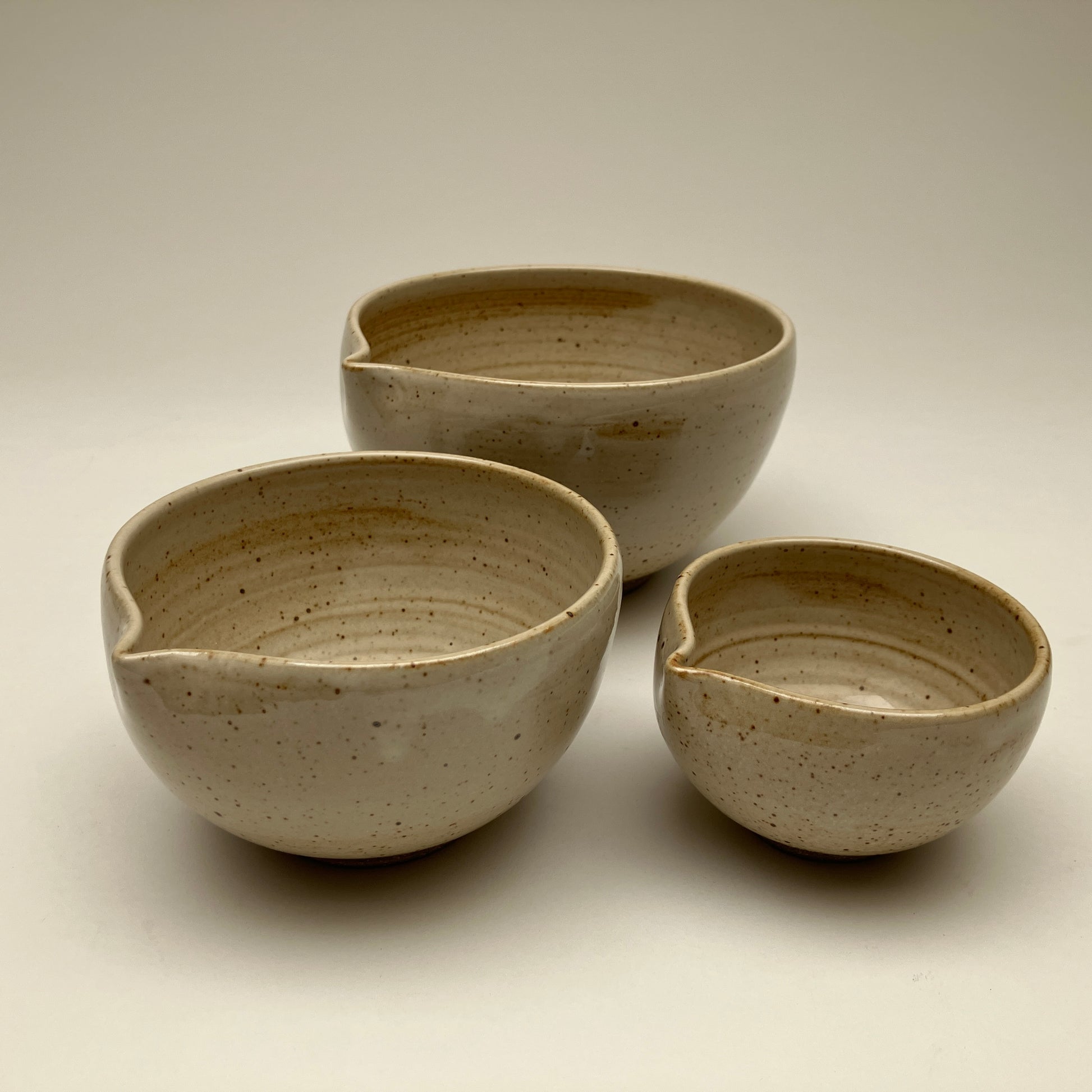 Dimensions of largest bowl are roughly 5.5 inches (d) x 5.5 inches (W) x 3 inches (H).